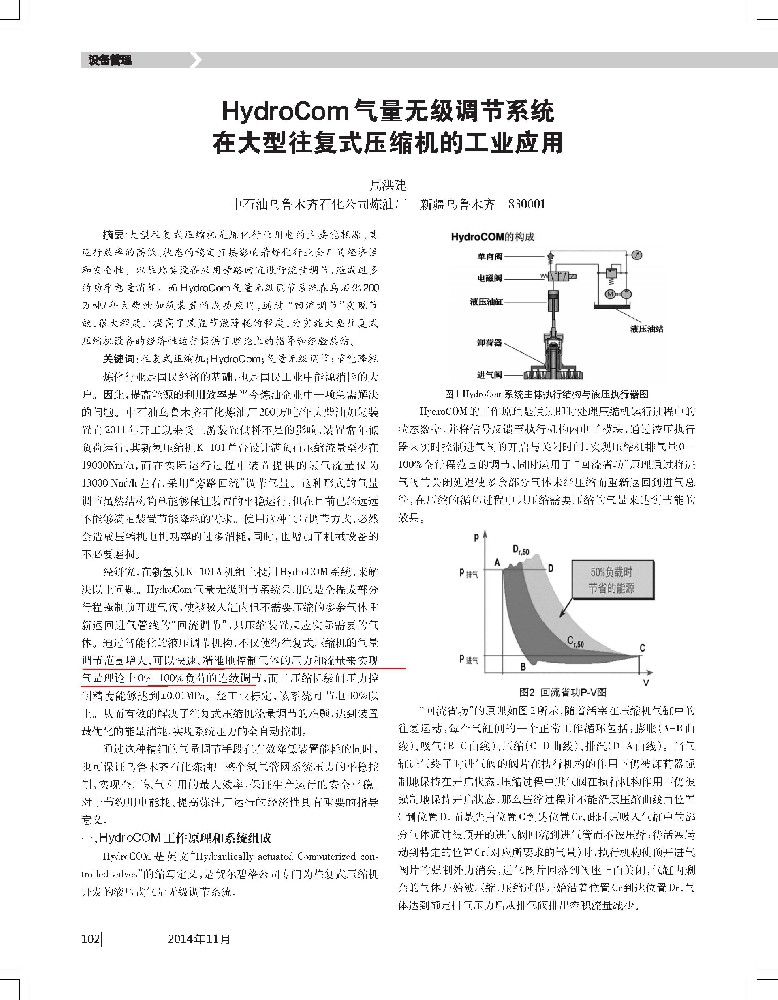 周洪建.HydroCom气量无级调节系统在大型往复式压缩机的工业应用[J].化工管理,2014,33.102-104+106..pdf